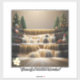 A minimalist Christmas scene featuring a golden waterfall, symbolising serenity and power. Subtle holiday elements like a decorated tree, ornaments, and a snowman blend with a soft textured background, creating a peaceful and festive atmosphere. "Original Image was generated by Meta AI. AI generated artwork. Licensed under CC BY-SA 4.0."