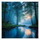 This serene painting captures the beauty of a sun-dappled forest river. Lush greenery lines the banks, while the gently curving stream reflects the warm hues of the setting sun. A sense of peace and tranquillity pervades the scene, making it the perfect escape for any nature lover.