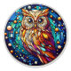 A serene scene unfolds as a stained glass window captures the beauty of a peaceful owl with vibrant flowers, their colours illuminating the intricate patterns of the glass.