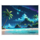This mesmerising painting captures the serenity of a tropical beach bathed in the soft glow of a crescent moon. Gentle waves lap against the shore, palm trees sway gracefully in the balmy breeze, and a blanket of stars twinkles in the vast expanse of the night sky. This artwork is an invitation to relax, unplug, and reconnect with the quiet beauty of nature.