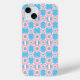 iPhone 14 case with a seamless modern geometric mirrored flower pattern in the colours of the transgender pride flag; a pink, blue, and white trans pride design, a pattern on a blue background