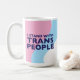 Show your support for the trans community with this ceramic mug featuring the trans flag and the text "I Stand with Trans People" on the front and back.