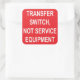 A sheet of six, 3" x 3" TRANSFER SWITCH, NOT SERVICE EQUIPMENT sticker labels for electricians to identify generator transfer switches.