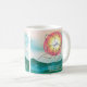 Brew Faith with Every Sip: Inspiring Christian Coffee Mug - Featuring a glowing butterfly perched on a woman's hand, it's inspired by 2 Corinthians 5:17: "Therefore, if anyone is in Christ, the new creation has come: The old has gone, the new is here!" This unique graphic design combines hand-drawn line art with a stunning watercolor mountain landscape, creating a masterpiece you can hold close. This high-quality mug is perfect for keeping your coffee or tea hot while offering a daily dose of inspiration.