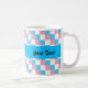 Personalised design with transgender pride flag of pink, white and blue; chequerboard pattern trans pride design, lgbtqiap+; with custom text template for your name or message