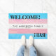One side says "Welcome", and the opposite side says "Bye!". It is also personalised with your family name or a short message in the centre. This makes a great gift for a friend or family member who is transgender.