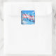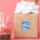 Stickers with a trans flag in light blue, pink and white with a blue sky done in a pop art comic style vibe.