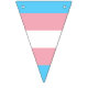 Party bunting banner with transgender flag with rainbow stripes of pink, blue and white; trans pride design