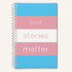 This design features the trans pride flag colours of white, blue and pink. On the front is the slogan 'our stories matter'. On the back is a Words of Wisdom section for you to write notes as you read. You can customise every element of this design in Zazzle, from text to colours.