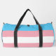 Duffle Bagf with the transgender pride flag with rainbow stripes of blue, white, and pink, trans pride design with a custom text field for your initial