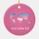 Christmas ceramic ornament with the transgender pride flag with a map of the world in the centre of the design. Pink, white, and blue flag of the trans pride movement; with an editable text field for your name or message; a great way to decorate your Christmas tree :D
