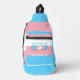 Sling Bag with the transgender pride flag with little hearts in the centre of the design. Pink, white, and blue flag of the trans pride movement; with an editable text field for your name or message
