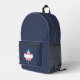 Backpack with maple leaf from flag of Canada in the colours of transgender rainbow flag of pink, blue and white; trans pride lgbtqiap+ design,