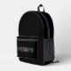 Backpack with text “Pride” in colors of transgender flag, rainbow love trans pride design on black background