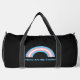 Duffle Bag with transgender rainbow stripes of pink, blue and white; trans pride lgbtqiap+ flag design, "These Are My Colors" template text, by pinkbrickroad