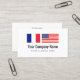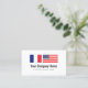 Translation services Fench American English translator business card template. Custom visit cards design with France and USA American flag company logo. Simple cards with modern typography for name and slogan. Professional cards for translation services, language teacher, education, travel industry, products, visa handling services, translator services, international law, European travel agency, transport business, import export, language translating company, trade biz, freelancer etc. Available in different sizes, paper thickness and round corner cut out shape. Also available for other languages. Flag of France and United States of America. Upload your own country flags optionally. Get more creative ideas and free inspiration in our unique shop.