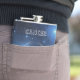 The flask itself is fine. It’s a cheap flask, obviously bought in bulk, however am prepared to overlook that. Given that it is a personalized item, I would have liked to have seen gift boxing instead of the generic packaging. Terrible printing, and/or quality. It’s a cheap, tacky vinyl. It is not cut straight and is also applied in a way that it is overhanging the bottom, causing the glue to catch on items and it will eventually roll and tear, damaging the wrap.