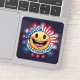 Elevate your products with this versatile 1200x1200 pixel design featuring a cartoon smiley face embellished with red, white, and blue stars. The dynamic backdrop includes a waving American flag and an exciting fireworks burst, all brought together by the cheerful "Star-Spangled Smiles" text in a playful sans-serif font. Thanks to its transparent background, this artwork seamlessly integrates onto various products, making it perfect for custom apparel, home goods, and more.
