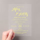 Acrylic Invitation, Size: 12.7 cm x 17.8 cm, Style: Clear Acrylic, CornerStyle: Rectangle, Print: Digital, Thickness: Standard (0.381 mm), Envelopes: None