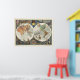 Full colour pictorial map of double hemisphere by Luc Marie Bayle and Transport Aeriens Internationaux from 1960. Surrounded by various mode of air and water transportation. Date estimated. The routes of the airline in red spanning each continent. On lower panel are old sailing schooners and whalers; the top features hot air baloon, early biplane, zepplin and jet. This planisphere was printed in an edition of 500 and 50 on Arches paper. Includes three decorative compass rose orientated with the nor