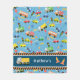 Fun transportation pattern . You can change the words "Mathew's " on the fleece to your choice. Get this as a gift for any boy or girl who loves cars, trucks or cement mixer.