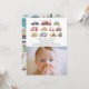 This cute and modern "honk, beep, vroom" transportation 1st/first birthday photo invitation features a white background with vehicles such as a police car, fire truck, car, first aid, taxi, pizza truck, moped, school bus, garbage truck, excavator, excavator, and tractor. The reverse side features a light grey background with a city map. Personalise for your needs. You can find more matching products at my store.
