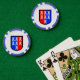 These poker chips are adorned with a Transylvania coat of arms design, featuring a striking combination of blue and red colours. The blue hue brings a sense of depth, while the red adds a vibrant touch. The intricate Transylvania coat of arms adds an air of history and mystique to the chips, making them an eye-catching addition to any poker game.