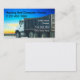 Hauling and dumpster rental service business card template with a scenic design that shows a dump truck in the background and a simple design.