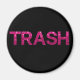 Fun fridge magnet for "country girls" who love livin' loud and fancy! Celebrate that White Trash / Trailer trashness with glam "trash" text in the look of chunky hot pink glitter on black background,
