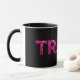 Fun coffee mug for "country girls" who love livin' loud and fancy! Celebrate that White Trash / Trailer trashness with glam "trash" text in the look of chunky hot pink glitter on black background,