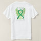 Traumatic Brain Injuries (TBI) Awareness Ribbon awareness uses a green ribbon for its cause awareness. The shirt art features a green awareness ribbon angel painting. The awareness angel t-shirt message notes "Traumatic Brain Injuries (TBI) Awareness". There is a large image on the back of the shirt and a smaller picture on the front of the shirt. The green awareness angel ribbon art apparel can be customised with personalised messages to make great cause event clothing for fundraiser shirts, group team walk shirts, awareness tshirt gifts, or other special cause events occasions for merchandise to help increase this cause's awareness in public for society's help in creating help & cause change.