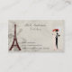 Business cards featuring a vintage illustration of the Eiffel Tower on a retro floral background.