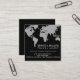 Modern and professional black and white card with name ('Unica one' font style) with custom travel related occupation (travel-agent) and the image of a grey map of the world... and templates for address, email and phone...