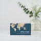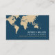 Modern dark-blue professional card with name ('unica one' font style) and custom travel related occupation (travel-agent) and the image of a map of the world... and templates for address, email and phone at the back...