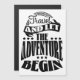 Travel and let the Adventure Begin retro logo motivational and inspirational quote.