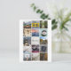 This postcard is a collage of travel images, such as suitcases, passports, arrows, paths, globes, and compasses.