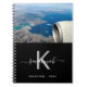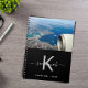 A chic black background. Personalise and add your own photo, a name, monogram letter and a text. The name is written in white with a large modern hand lettered style script with swashes. The monogram letter in grey. To keep the swashes only delete the sample name, leave the spaces or emoji's in front and after the name