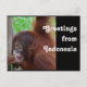 Indonesian postcard with an orangutan. Exotic Southeast Asia travel postcard with a red ape, a juvenile orangutan in the rainforest of Kalimantan, Indonesian Borneo. The artist is active with orphan orangutan rescue and rehabilitation. Rebecca Reeder donates 100% of her profits on this item to the Care Centre for orangutans where she volunteers.