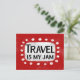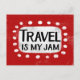 "Travel Is My Jam" is a fun text design with a white accent shape surrounded by white whimsical textured dots.