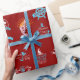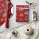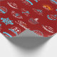 A series of different travel labels on a red background. This design looks really effective on this Wrapping Paper