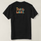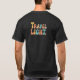 The "Travel Light" t-shirt design features a playful, multi-coloured font set against a vibrant background. The design encourages a minimalist and carefree approach to travel.