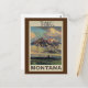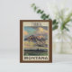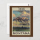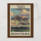 Travel Montana, picturesque vintage poster, mountains, train and beautiful background sky.