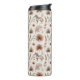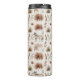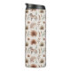 Travel mug with a pattern of brown and green foliage, featuring whimsical goats. The earthy tones create a rustic, nature-inspired aesthetic.