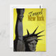 A retro style travel postcard with the Statue of Liberty and Travel New York wrote on it.