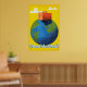 Travel the World beautiful retro style travel poster art print of a old suitcase sat on top of the earth.