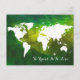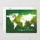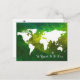 Send someone good news with the design of a white map of the world on a green watercolor, a small aeroplane, and custom quote "To travel is to live"