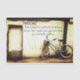 Tissue paper with image of bicycle on a European road with a quote about finding adventure.