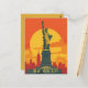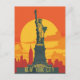 This travel postcard showcases a serene and warm illustration representing New York City skyline with the Statue of Liberty. It is a great and romantic postcard for travelers that plan to visit New York City or for those who travelled New York City and sending a postcard to their family or friends.