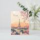 This travel postcard showcases a serene and warm illustration representing Paris skyline with a view of the Eifel Tower and historic apartments. It is a great and romantic postcard for travelers that plan to visit Paris or for those who travelled Paris and sending a postcard to their family or friends.