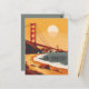 This travel postcard showcases a serene and warm illustration representing San Francisco with the famous red Golden Gate Bridge. It is a great and romantic postcard for travelers that plan to visit San Francisco or for those who travelled San Francisco and sending a postcard to their family or friends.